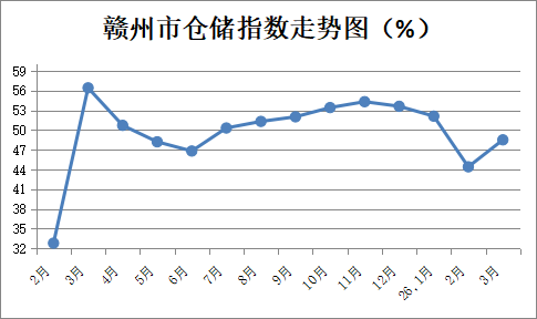 【權威發布】2026年3月贛州市倉儲指數為48.5%