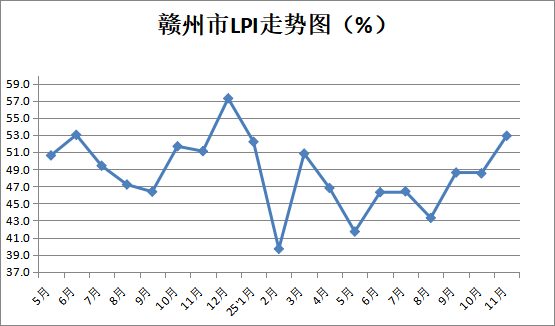 【權(quán)威發(fā)布】2025年12月贛州市物流業(yè)景氣指數(shù)為56.5%